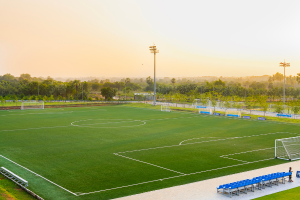 A UNESCO heritage town located just 60 km from Chennai — scenic, safe, and vibrant. The facility includes 3 natural grass pitches, 1 artificial turf, 1 hybrid pitch, and an indoor futsal stadium — all FIFA-approved.